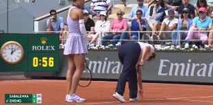 金年会06月03日讯 法网1/4决赛郑钦文vs萨巴伦卡首盘双方战至6-5时,郑钦文发球局比分30-30,此时萨巴伦卡回球,裁判认定界内,郑钦文认为出界了。